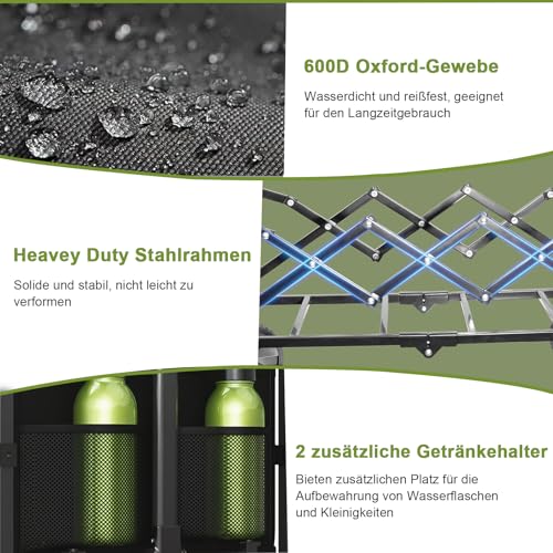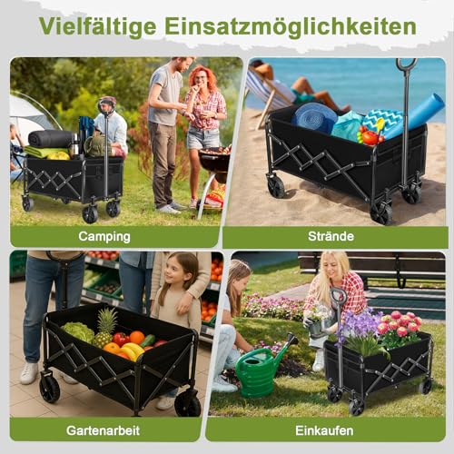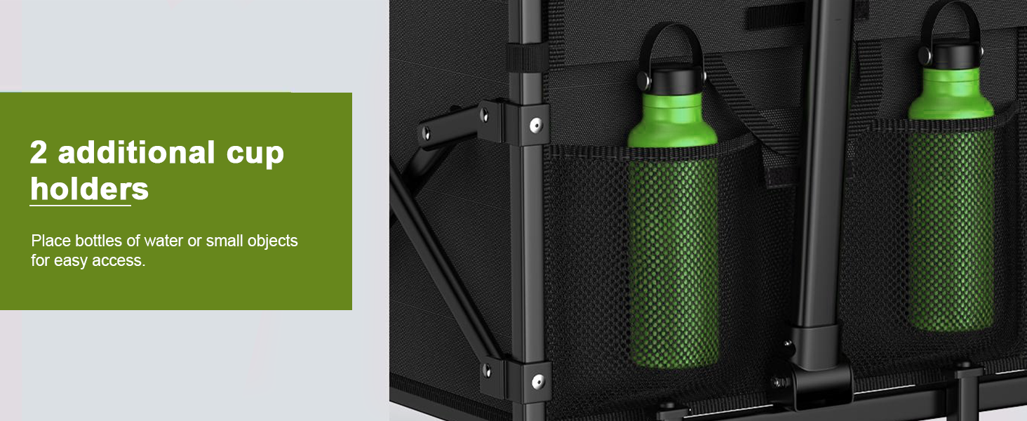 Multifunctional design for the needs of the whole family: whether camping with the family, playing on the beach, tidying up the garden, shopping at the supermarket or transporting equipment to the stadium, this lightweight and sturdy folding trolley is the ideal choice for you. With its double cup holders, it is the perfect helper for every outdoor enthusiast and family user.