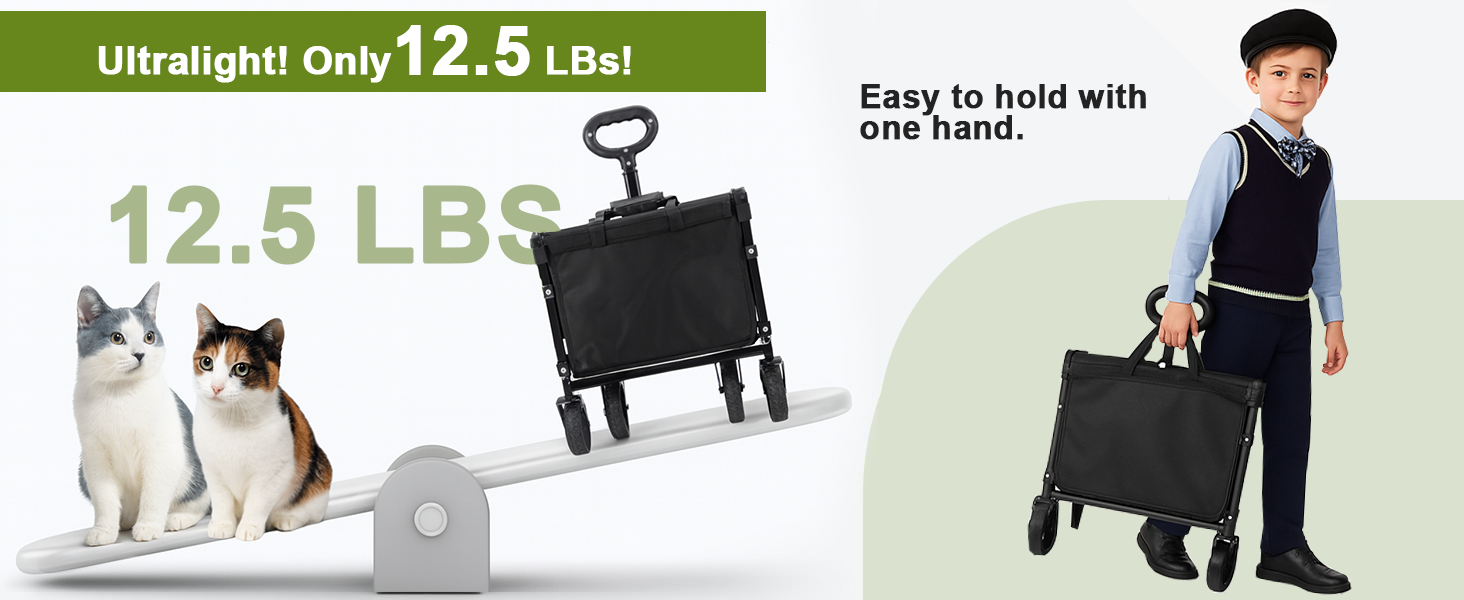 Lightweight and compact folding, stowable in seconds: the entire car weighs only approx. 5 kg, and when folded, its volume is reduced by up to 80%, so it can easily be placed in the boot or in a corner of your home. No tools are required for unfolding and stowing away; it can be folded quickly and effortlessly and is perfect for everyday use and outdoor use in various situations.