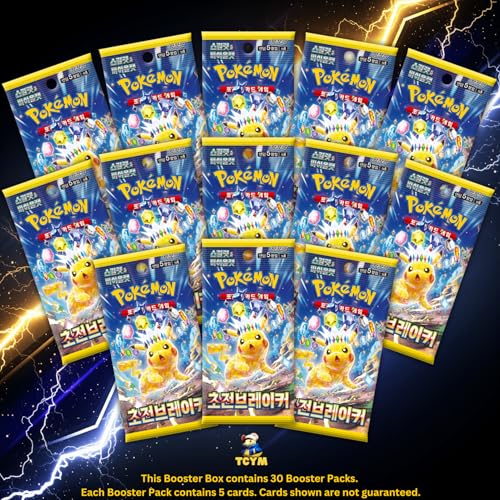 - Korean Surging Sparks Booster Box – This Booster Box Pokémon includes 30 sealed Korean booster packs, each containing 5 official Korean Pokémon cards. A great alternative to the Japanese booster box, this release features cards from the popular Pokémon TCG: Scarlet & Violet—Surging Sparks Booster Bundle (6 Booster Packs) and offers collectors perfect synergy with their existing Pokémon cards Surging Sparks collection.