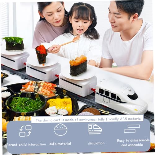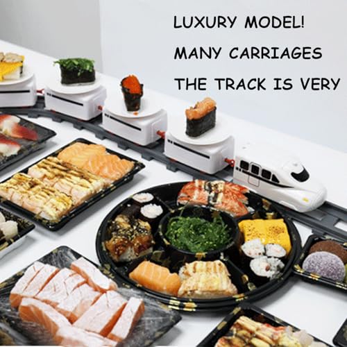 as your favourite dishes and snacks circulate around the table, adding an of fun and novelty to your dining experience.The Sushi Train’s rail conveyor system is not only aesthetically pleasing, but also ensures that your food is within, making it perfect for sushi, appetizers, desserts, or any canapés. The included tray fits conveniently on the train and allows you to elegantly present a variety of dishes to your guests. It’s like having your own personal sushi chef. The small train table is battery-powered to ensure smooth, continuous rotation. There are no cords or outlets to worry about, making it suitable for any table setting. Whether you’re hosting a dinner party, showcasing a culinary event, or simply enjoying a family meal, the Sushi Train will add an of excitement and elegance to your table.