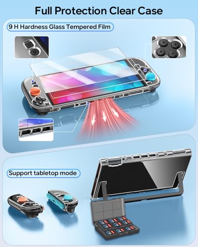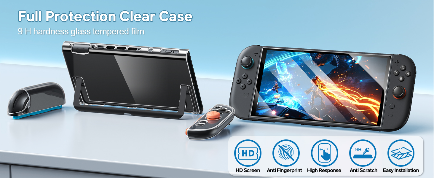 - 360° All-Around Protection:Offers full protection for your switch 2 console. The crystal-clear hard case is scratch/drop-resistant, with removable split-type Joypad covers. Paired with a 9H tempered glass screen protector to guard against impacts and smudges. Includes textured thumb grips for enhanced control and slip resistance