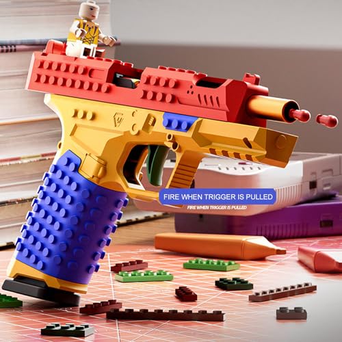 【Durable ABS Plastic Construction: Colourful and Collectible】Crafted from premium ABS plastic, the Glock building block toy pistol features vibrant red, yellow, and blue hues. Built to withstand daily play, it offers exceptional durability and wear resistance. This eye-catching, long-lasting piece makes a distinctive addition to any toy collection.