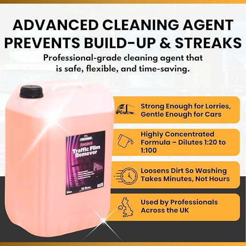GENTLE ON SURFACES, TOUGH ON DIRT – An effective TFR road traffic film remover that lifts grime without harming paintwork when diluted correctly. For safe handling, wear gloves and eye protection.