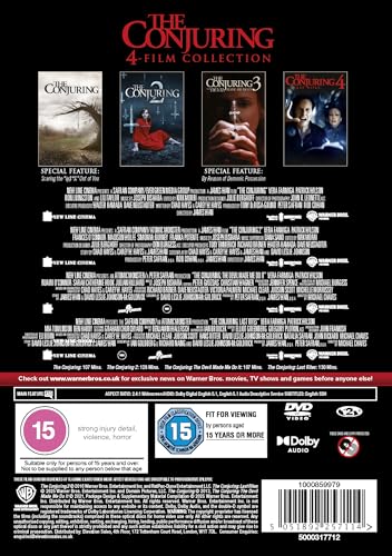 4-Film: Step into Ed and Lorraine Warren’s most terrifying real-life cases. Includes: The Conjuring, The Conjuring 2, The Conjuring: The Devil Made Me Do It, and The Conjuring: Last Rites