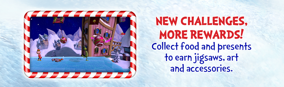Has The Grinch grown to love Christmas, or should we be suspicious? Hmmm. Snowboard, sleigh and even parachute through Who-ville, spreading Christmas cheer in The Grinch: Christmas Adventures – Merry & Mischievous Edition. Collect presents and help The Grinch’s heart grow three sizes with awfully fun challenges alongside Max. Although it’s fun to be naughty, show the Whos you can be nice by preparing a festive feast. Unlock Grinchy gadgets, solve puzzles, and earn rewards that will help you take on tin soldiers, gingerbread men, and dodge falling trees. Will The Grinch save or steal Christmas? It’s up to you.