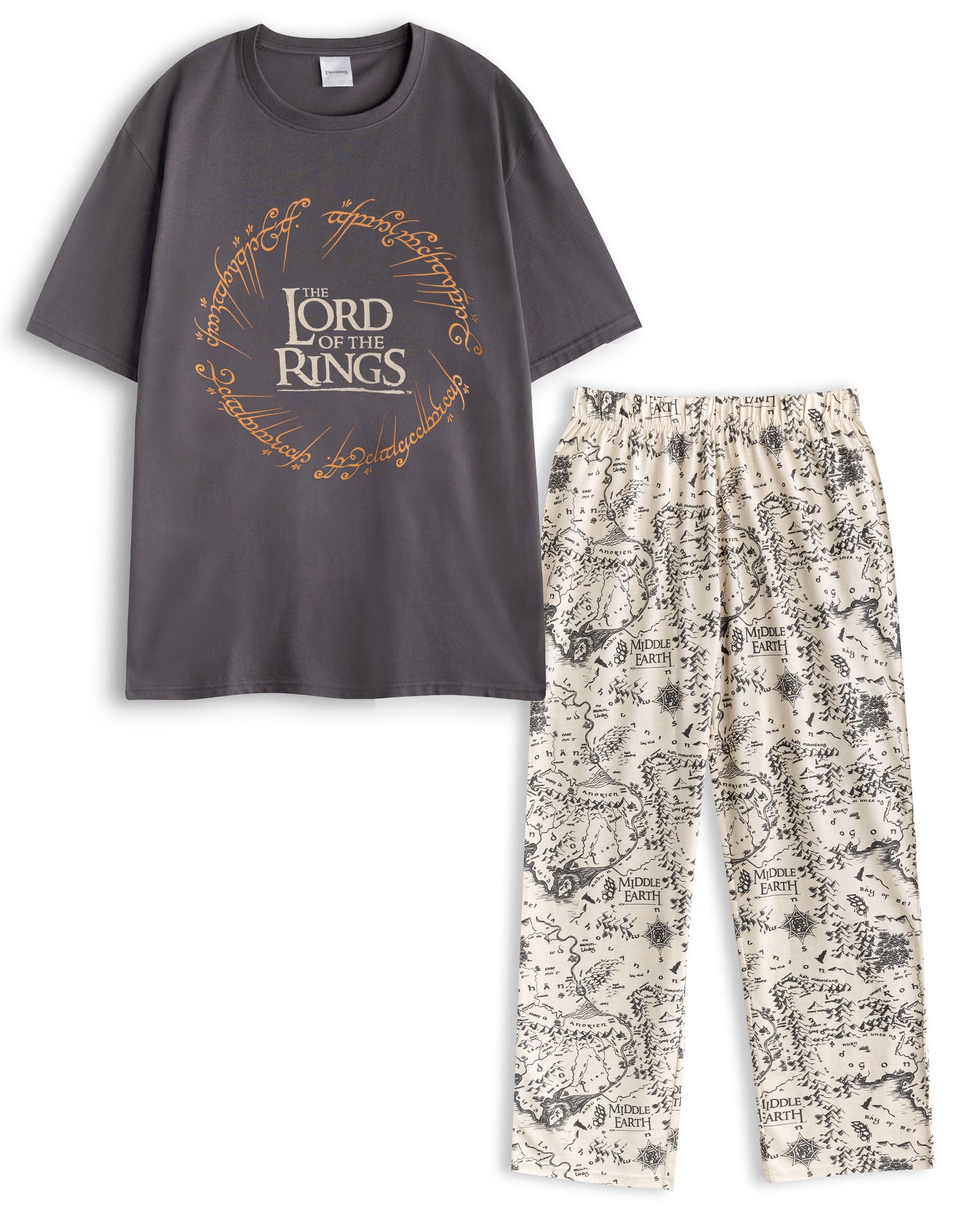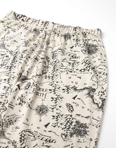 The Lord Of The Rings Men's Grey Sleepwear Set | Themed Crew Neck Short Sleeve Graphic Tee & Map Print Bottoms | Fantasy Apparel with Elastic Waistband