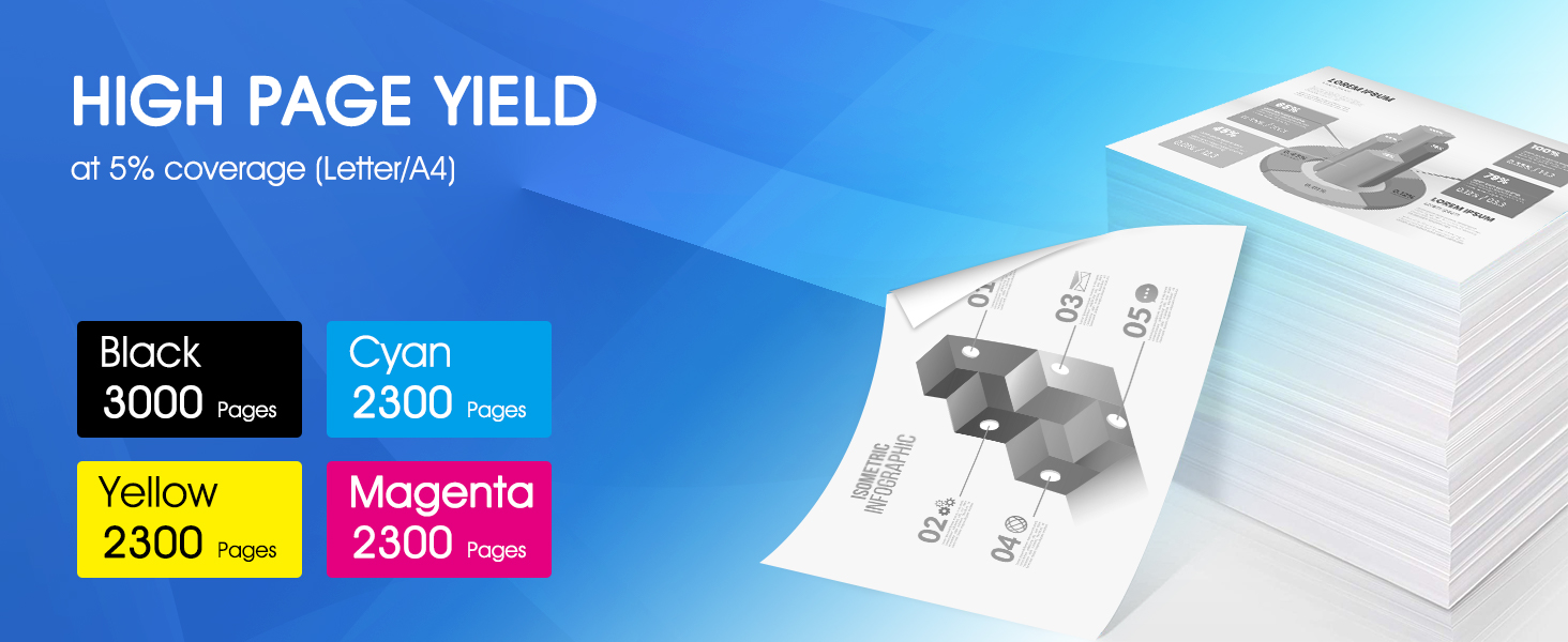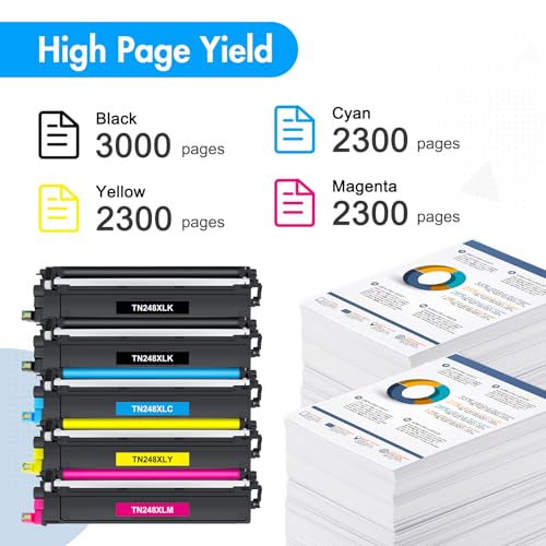 Yield: 3,000 pages per TN-248XLBK Black Toner Cartridge and 2,300 pages per TN-248XLC TN-248XLM TN-248XLY Color Toner Cartridge with 5% coverage (letter/A4)