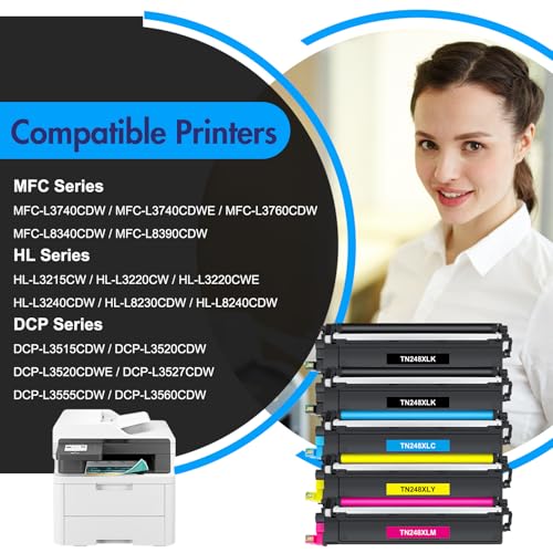 Color: 2 x Black, 1 x Cyan, 1 x Magenta, 1 x Yellow (TN-248XLBK TN-248XLC TN-248XLM TN-248XLY TN248CMYK TN248XLCMYK toner)