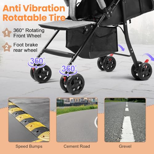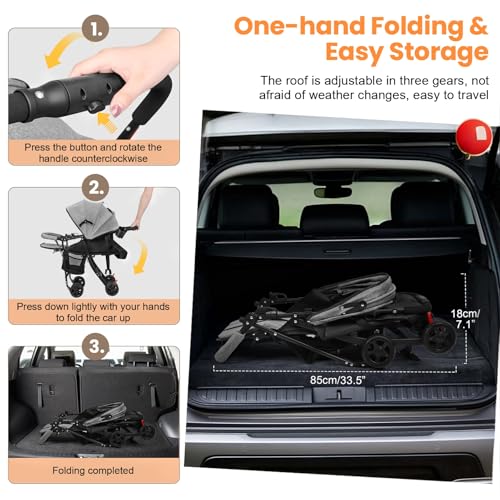 Lightweight & One-Hand Fold for Easy Travel: Weighing only 4.2 kg, this stroller folds compactly with one hand and can be carried effortlessly on your shoulder. Its small footprint fits perfectly in airplane overhead bins or car trunks, making it the perfect companion for daily outings, shopping trips, and vacations.