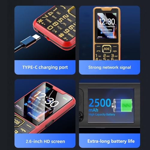 - 2.6 Inch HD Shatter Proof Display: Featuring a 2.6 inch HD display with shatter proof technology, this senior phone offers crystal clear visibility. Advanced adhesion techniques prevent dust and air from entering.