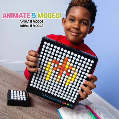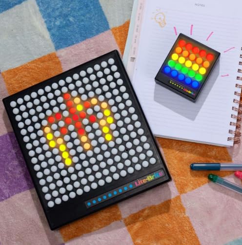 Introducing the Lite-Brite Touch XL & Mini Combo Set, a brilliant fusion of classic light-up creativity and modern touch technology. This innovative set features an expansive XL board with 225 light buttons and a compact mini version with 25 buttons, perfect for both big projects and on-the-go entertainment. Create dazzling illuminated designs, animations, and patterns by simply touching the responsive buttons – no pegs required! The sleek black display board serves as your canvas, while the colourful light buttons bring your artistic visions to life with vibrant illumination. Whether you’re crafting intricate pixel art, playing interactive games, or designing animated sequences, this versatile combo set offers endless creative possibilities. The larger XL board provides ample space for detailed masterpieces, while the mini companion is perfect for quick designs or travel. Ideal for ages 6 and up, this contemporary take on a beloved classic combines tactile engagement with luminous entertainment, making it a captivating choice for young artists and tech-savvy creators alike.
