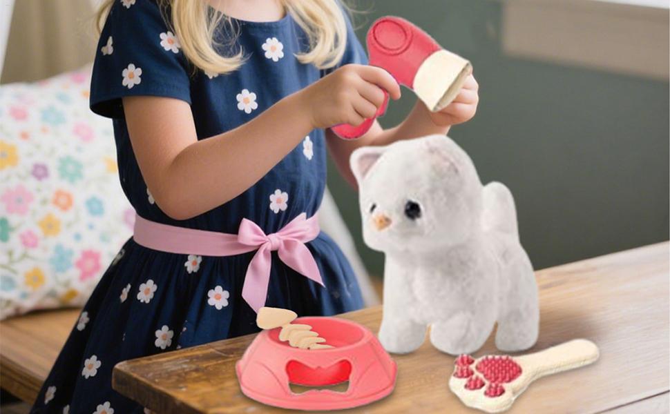 Toy Pet, Stroller Pet Care Accessories Toys, Realistic Animal Plush Figures for Pretend Play Birthday Baby Toddler Kids Girls