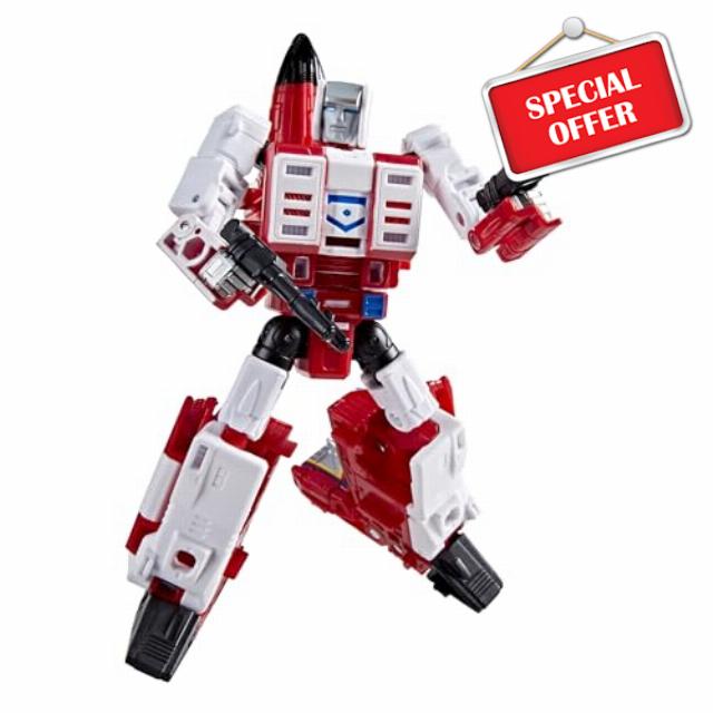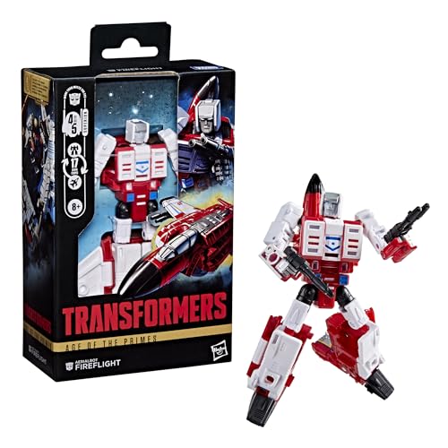 AGE OF THE PRIMES AERIALBOT FIREFLIGHT: this Transformers Aerialbot Fireflight figure features deco and details inspired by the Transformers universe