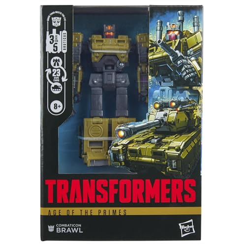 Experience the epic universe of Transformers robots with the Transformers Combaticon Brawl toy! The 14-cm (5.5 inch) Voyager Class figure converts from robot action figure to tank mode in 23 steps, and can be combined with other Combaticon figures (each sold separately, subject to availability) to make Bruticus. With intricate poseability and attachable accessories like a cannon and a blaster, this Transformers action figure makes an amazing addition to any collection. Keep an eye out for more Age of the Primes Transformers collectible toys (sold separately, subject to availability) featuring characters like Maximal Big Convoy, Amalgamous Prime, Junkion Wreck-Gar and more to create a line-up that is – More Than Meets the Eye. TRANSFORMERS and HASBRO and all related trademarks and logos are trademarks of Hasbro, Inc.