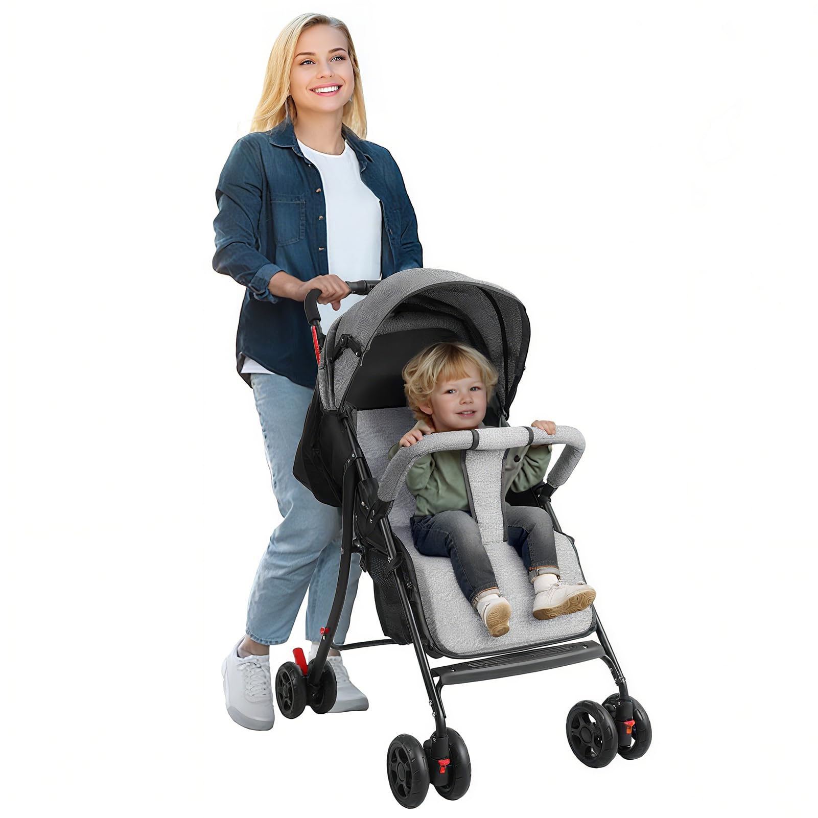 - One Hand Folding Design: Weighing only 4.2 kg, this compact stroller folds easily with one hand and fits neatly in car boots or overhead compartments. Perfect for travel and urban life, this foldable pushchair lets parents carry it on the shoulder effortlessly, ideal for commuting, short holidays, and shopping trips.