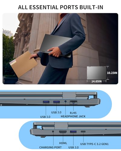 ✅ Modern Connectivity for Every Accessory : This USB-C laptop comes packed with HDMI, RJ45 LAN, USB-A 3.0, and full-function USB-C ports. Easily connect to your laptop docking station with 3 monitors, external speakers, Bluetooth mouse, wireless keyboard, game controllers, or even a portable triple monitor extender. Supports Wi-Fi 5 and Bluetooth 5.0 for ultra-fast wireless performance