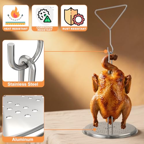 Turkey Deep Fryer Accessories for Deep Fry Pot Grill BBQ, Turkey Fryer Stand Kit for Deep Fryer,Stainless Steel Turkey Fryer Hanger Poultry Rack w/Turkey Fryer Lifter Hook,Vertical Roaster Holder Base