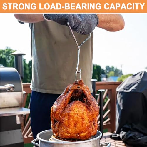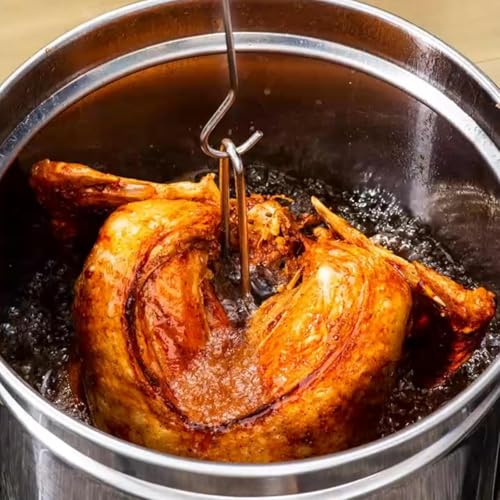 - Effortless Usage and Maintenance: Featuring a user-friendly triangular turkey hook for deep fryer, the kit makes lifting and lowering your poultry easy and hassle-free. ✅Vertical turkey stand Assembly and maintenance are straightforward, with compatibility for both dishwasher and hand washing. Our pit barrel turkey hanger sturdiness is key; this deep fried turkey kit provides reliability while being simple to operate, ensuring your cooking experience is enjoyable from start to finish.