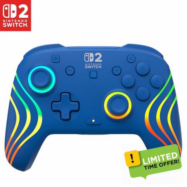 Brighten your gaming experience with the Afterglow Wave Wireless RGB Gaming Controller for Nintendo Switch™ 2. This controller also works with Nintendo Switch™, Nintendo Switch™ Lite, and Nintendo Switch™ – OLED Model.Featuring eight customizable RGB zones and four preset modes, you can match the lighting to your style or mood. Thumbsticks with integrated TMR (Tunneling Magnetoresistance) sensor technology offer precision and durability, while built-in motion controls enhance responsiveness. Access GameChat features quickly with the conveniently placed C Button. Enjoy up to 20 hours of wireless play thanks to the rechargeable battery. Officially licensed by Nintendo®, this controller delivers vibrant style, reliable performance, and all-day comfort for every gaming session.