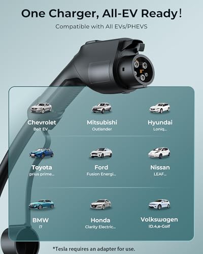 - ✅【Works with Every Major EV】This charger connects seamlessly to all electric and plug-in hybrid vehicles—including Ford, GM, Nissan, Audi, Kia, Honda, BMW, Hyundai, Chevrolet, and many others. The integrated Type 2 charging cable ensures broad compatibility right out of the box. Perfect for home use, road trips, or charging at vacation rentals. (Tesla models require a compatible adapter.)