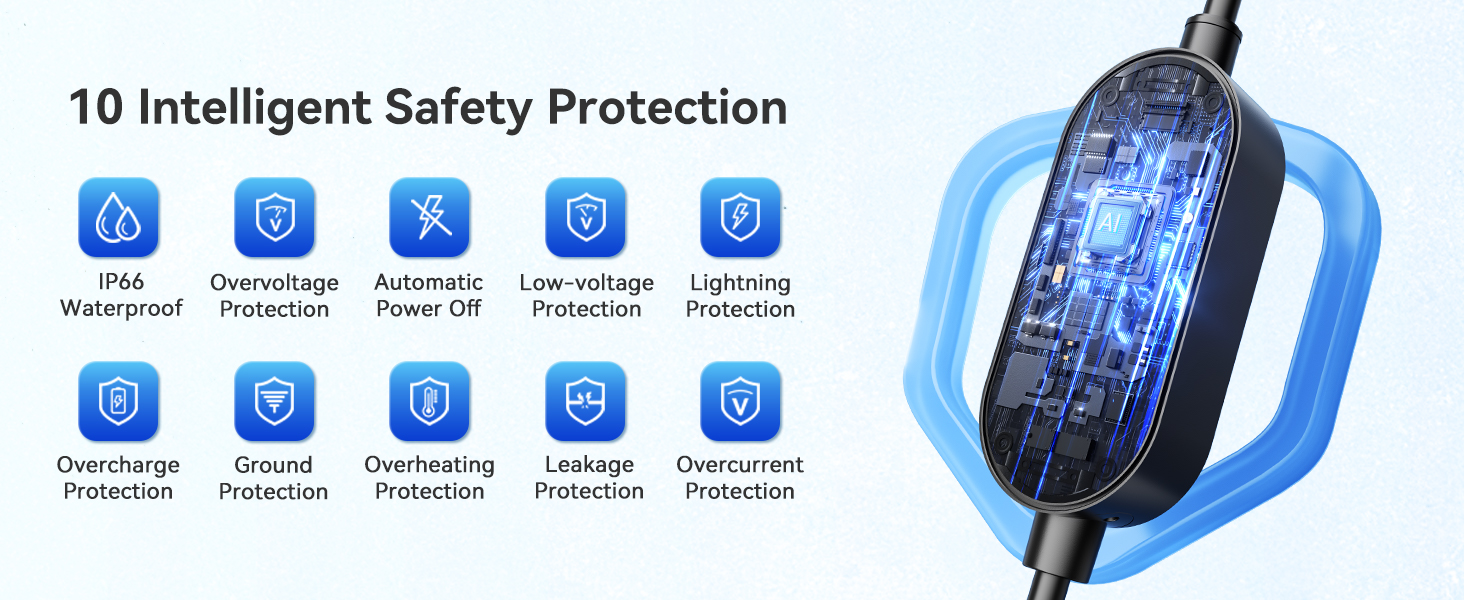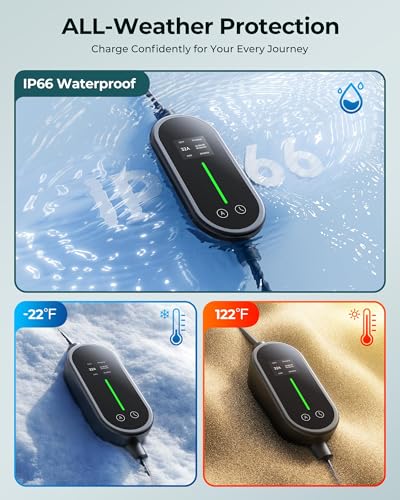 - 【Engineered for Safety & Peace of Mind】Your safety is non-negotiable. With comprehensive protection and IP66 weather resistance, this EV charger is designed for secure operation. An intelligent control chip continuously monitors the charging status to help protect your vehicle, home, and family.