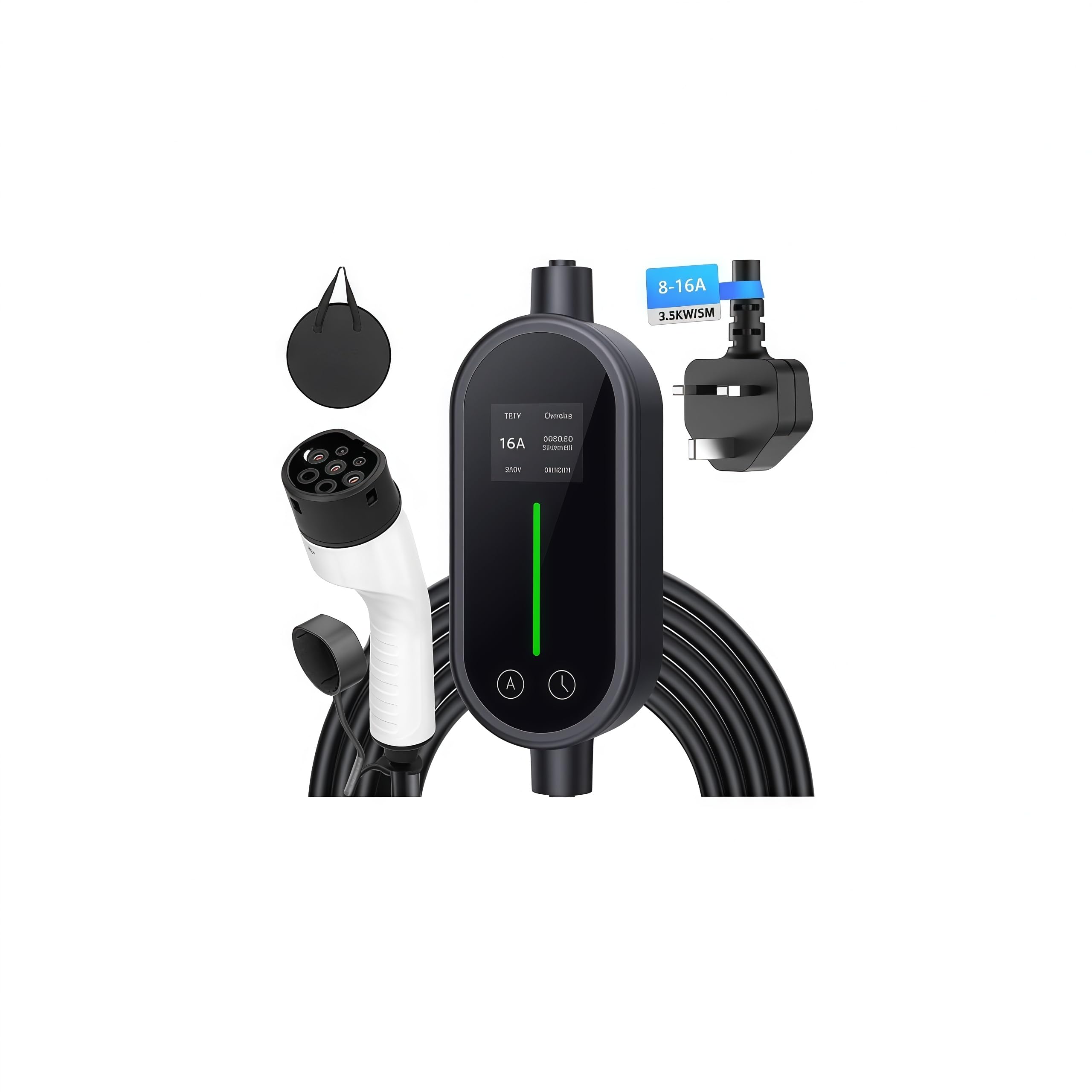 Type 2 to 3 Pin EV Charger 3.5kW [8/10/13/16A], 5m/16.4Ft Cable with LCD Display | IP66 Waterproof | AI-Powered Chip Monitoring | All Type 2 Electric Vehicles & PHEVs
