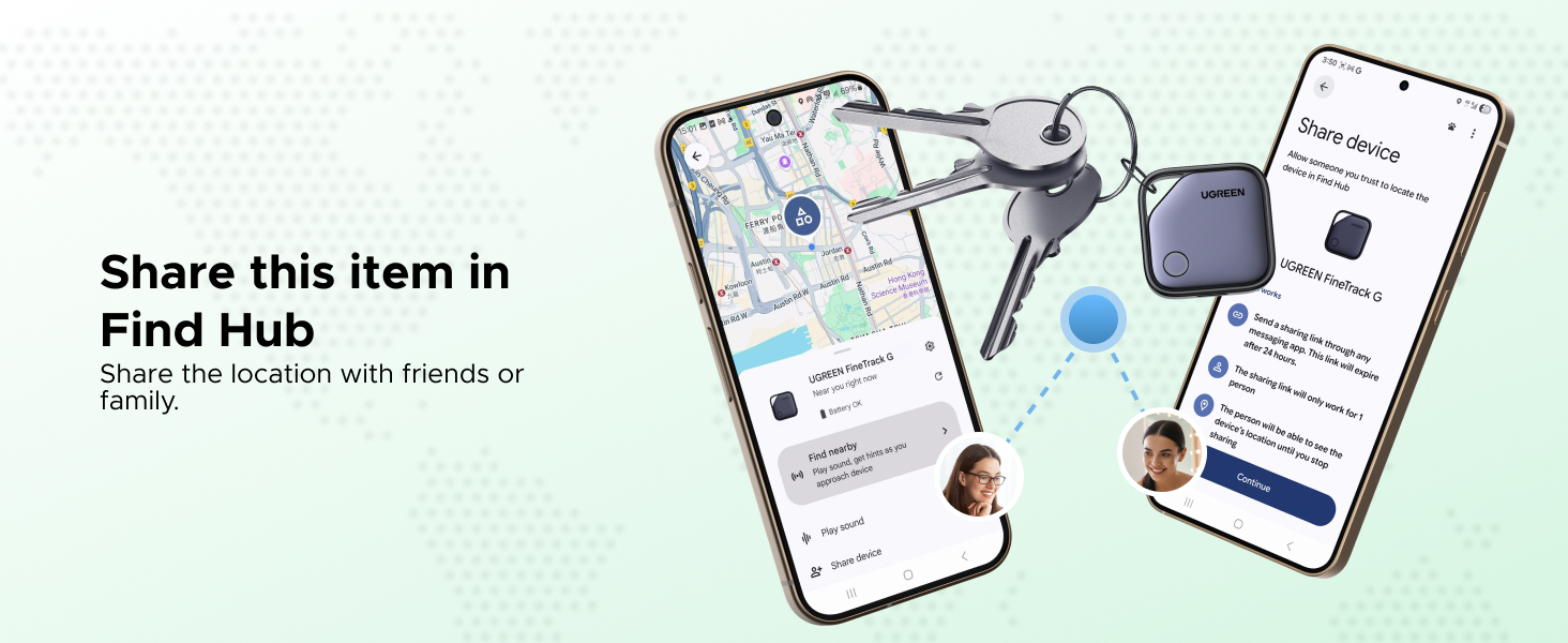 - Google Find Hub Certified (Android devices only): UGREEN FineTrack G is officially certified by Google Find Hub, can be seamlessly paired with Android devices, provides reliable location tracking, compatible with Pixel 10/Galaxy S25, etc.