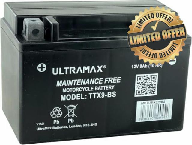 Ultra Max TTX9-BS, 12V 8AH 90 CCA Motorcycle Motorbike