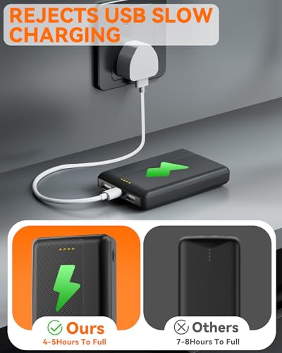 Upgraded Power Bank for Heated Gilet – 5V 2.4A 10000mAh USB Output Rechargeable Battery Pack for Heated Jackets, Vests, Coats, Trousers & Underwear with Charging Accessories