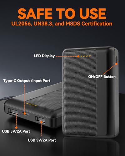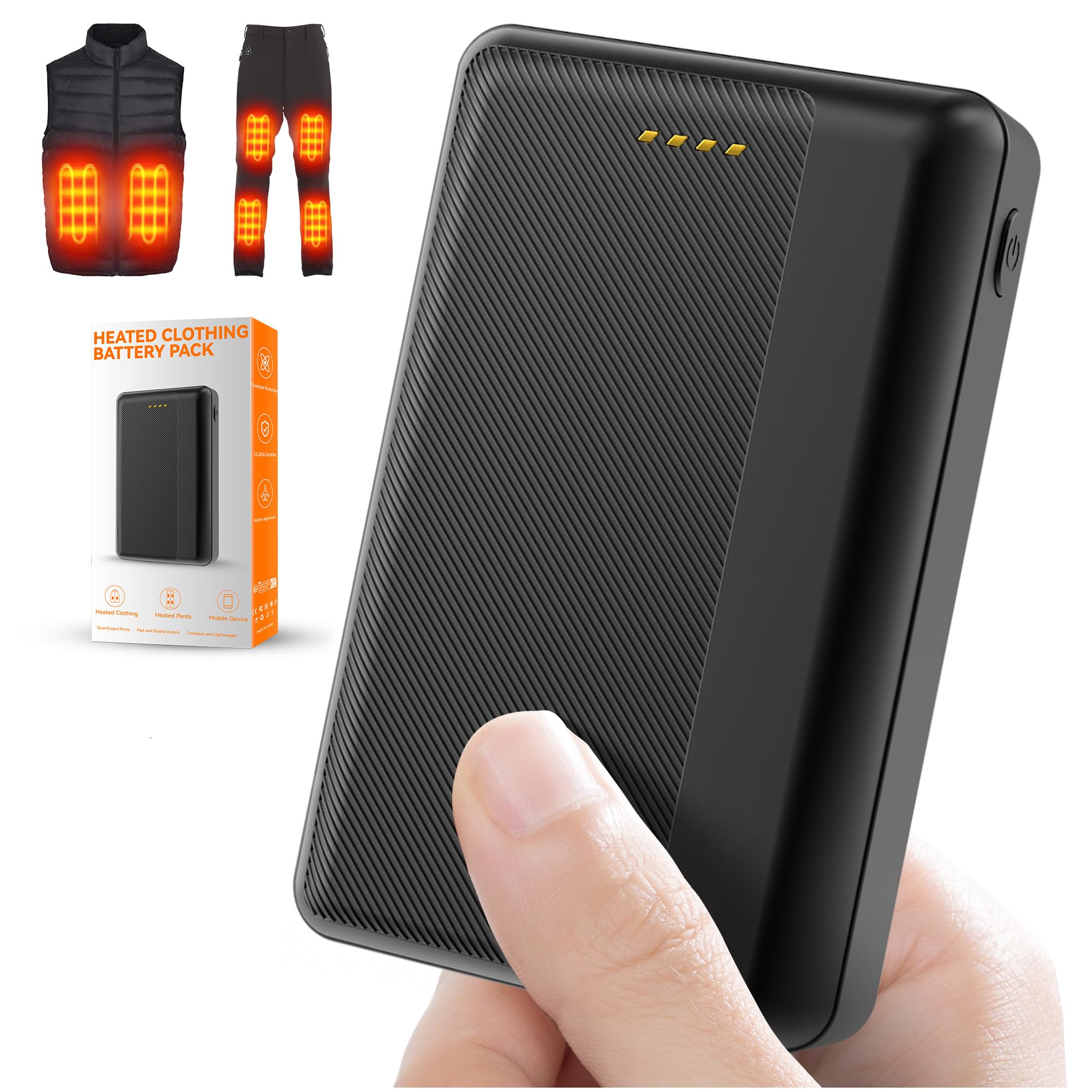 - 【Compact, Portable & Airplane-Friendly】: Our heated vest power bank weighs only 0.38 lbs, with dimensions of 2.56" x 0.69" x 3.90". It fits easily in pockets, wallets, or backpacks, and is airplane-safe – ideal for outdoor activities and travel.