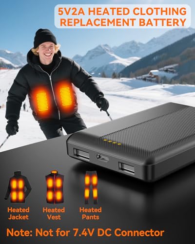 - 【Upgraded Dedicated Heated Clothing Battery Pack】: Our battery pack is compatible with most 5V heated clothing on the market (heated vests, jackets, pants, etc.). Equipped with a dedicated chip and a fresh matte & glossy finish, it delivers stable and reliable power output to meet your warmth needs while enhancing practicality. Note: Not suitable for 7.4V DC heating devices.