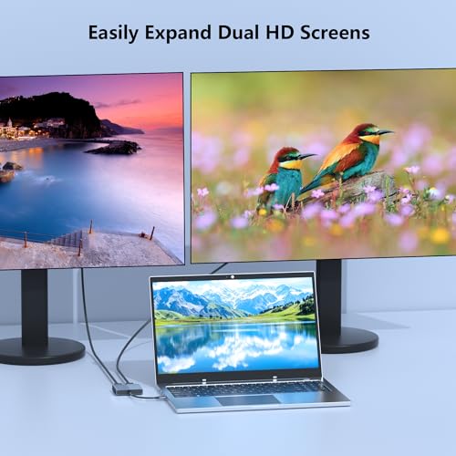 - 【4K@60Hz UHD Visual Feast】This display port splitter for dual monitors supports resolutions up to 4K @60Hz thanks to DisplayPort MST technology. It also supports 1440p and 1080p @60Hz. No driver required, plug in and play. Video output will be 4K only if your device supports 4K resolution. Ensure you're using a DP 2.0 or higher-quality cable for optimal performance.)