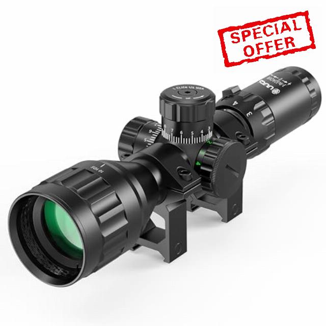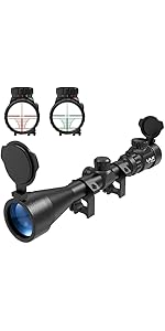 - ✔【Illuminated Mil Dot Reticle】: Equipped with a dual Red and Green illuminated Mil Dot reticle, this scope offers five levels of brightness control on the side, facilitating easier aiming in any lighting condition. Whether you’re in bright daylight or low-light environments, you can quickly adjust the reticle for optimal visibility.