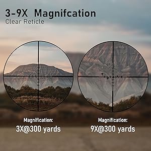 - ✔【Variable Magnification for Enhanced Targeting】:This scope features a magnification range from 3X to 9X, allowing for precise targeting at distances up to 300 yards and beyond. The adjustable objective (AO) capability ranges from 3 yards to infinity, ensuring a clearer and more accurate aiming image, which is crucial for various shooting scenarios.