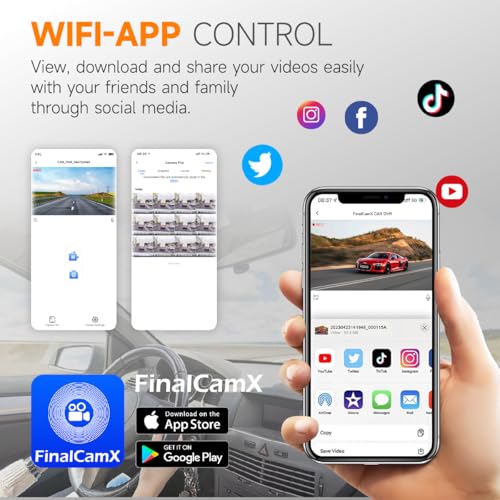 - 【Smart Control via WiFi & App】 Take command of your dash cam with our user-friendly app, "Viidure." Connect your smartphone to the dash cam's WiFi for easy access to live viewing, video editing, and photo downloads. Effortlessly share memorable moments or critical footage with friends and family on social media, enhancing your driving experience while keeping loved ones informed.
