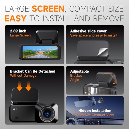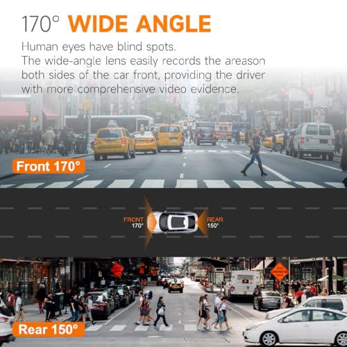 - 【Ultra HD 4K Dual Dash Cam】 Experience the power of our 4K Dash Cam, featuring dual cameras that capture stunning ultra HD 4K front and 1080P rear video. With a 170° wide-angle front camera and a 150° waterproof rear camera, you'll minimize visual blind spots while documenting important details like license plates and road signs. The WDR technology ensures clarity even in low-light conditions, making it an essential tool for evidence in case of accidents.