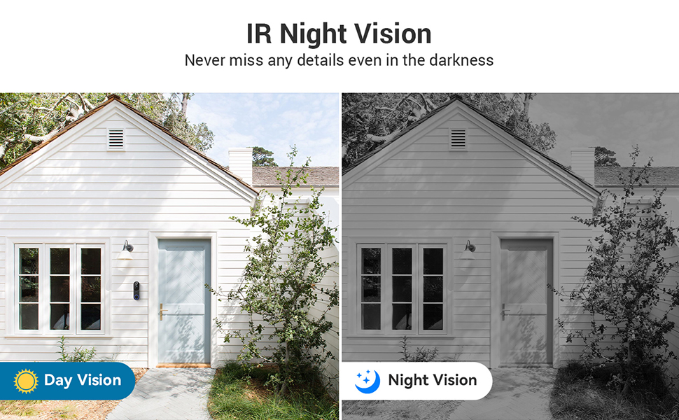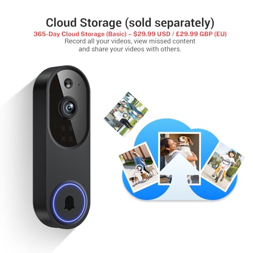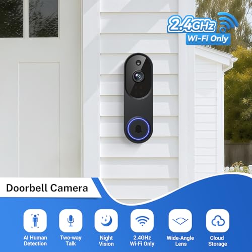 Video Doorbell Camera, Wireless Indoor/Outdoor Surveillance, Smart AI Human Detection, 2-Way Audio, Night Vision, Live View, 2.4G WiFi Only, Cloud Storage (Sold Separately)