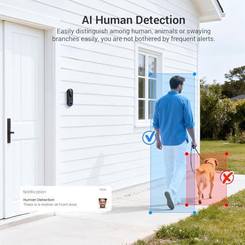 Video Doorbell Camera, Wireless Indoor/Outdoor Surveillance, Smart AI Human Detection