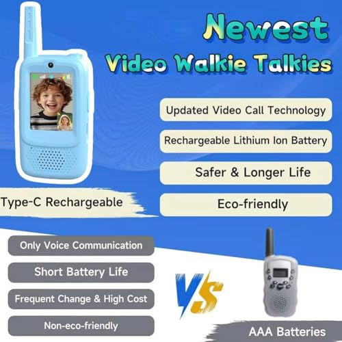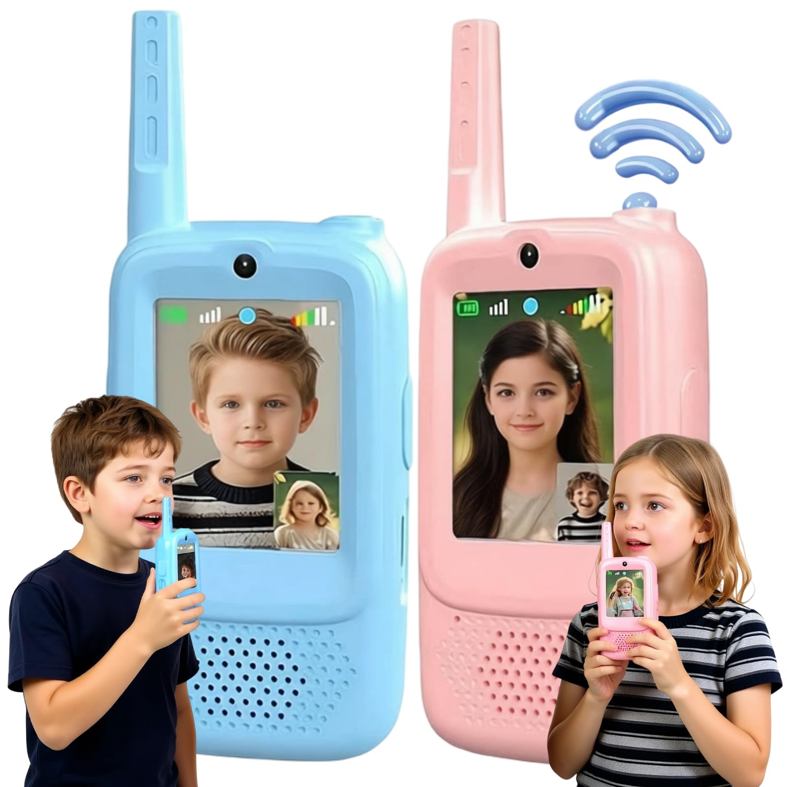 - 【REAL-TIME VIDEO CHAT & FUN PLAY EXPERIENCE】Unlike traditional walkie talkies for kids that only transmit sound, these upgraded video walkie talkies for kids feature built-in screens for real-time face-to-face chats; perfect for indoor and outdoor playing like hide-and-seek or backyard play; enhance communication and creativity while making playtime more vivid