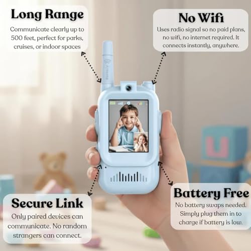 1.No internet needed -safe & simple – Video + Voice for Endless Giggles – Long range – perfect indoors & outdoors – Boost Communication Skills