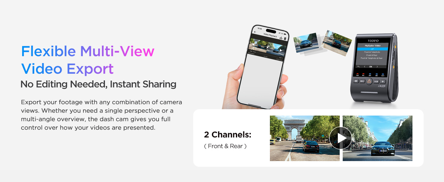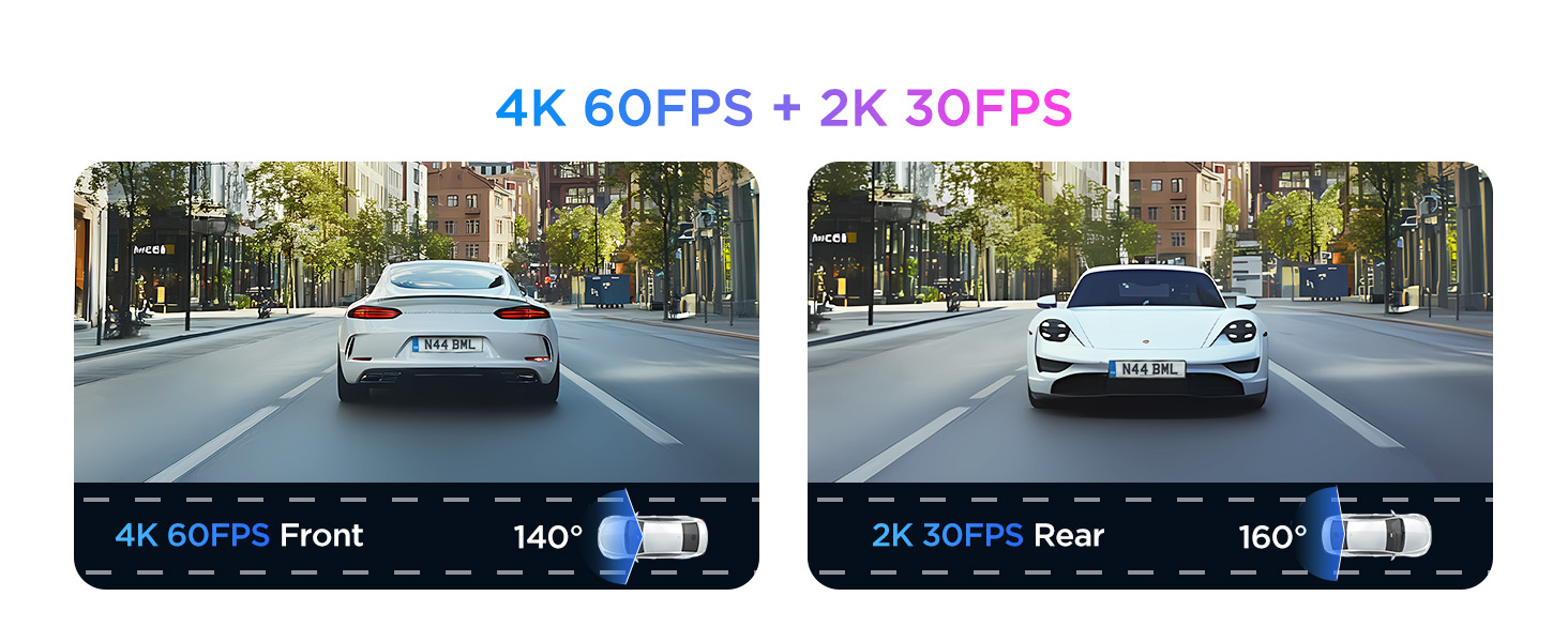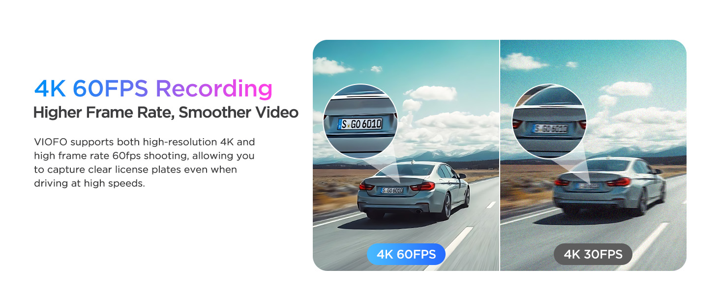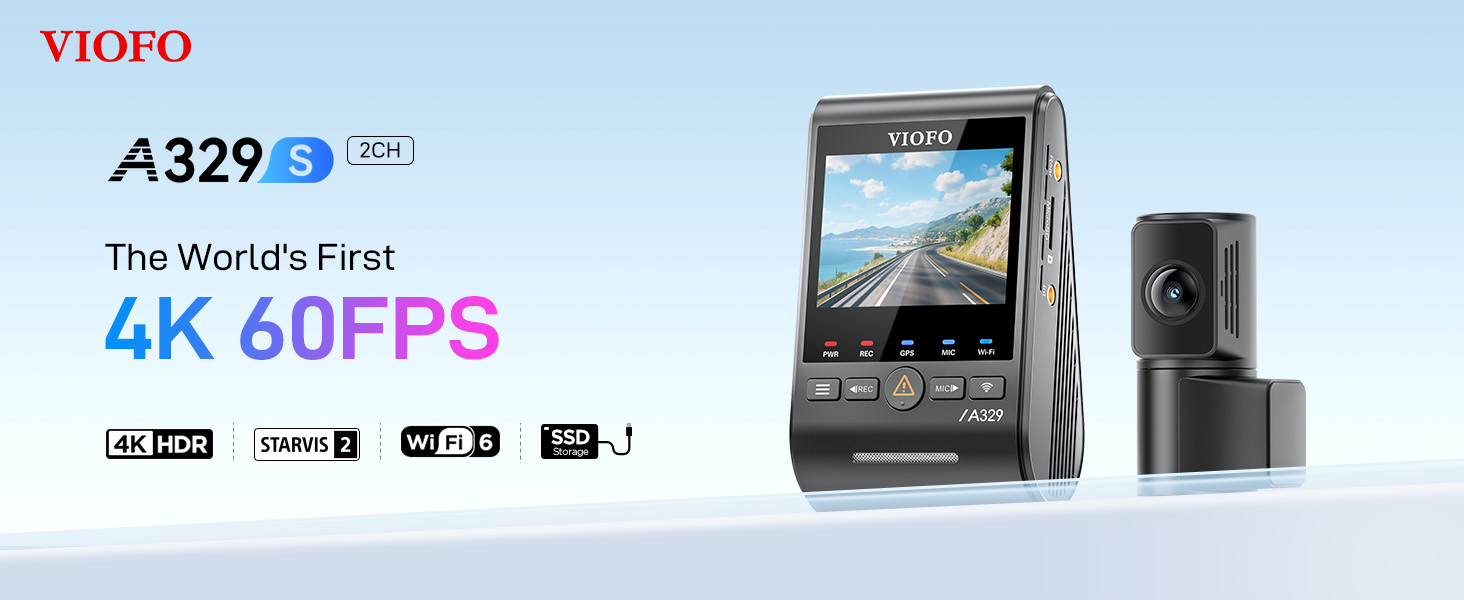 - [4K 60FPS Front + 2K Rear Recording] Capture ultra-smooth, 4K high-definition video with the VIOFO A329S Dash Cam. Experience exceptional clarity with 4K@60fps in front and 2K in the rear, ensuring every detail is visible from license plates to road signs, day or night. (*Note: The front cam 4K 60fps is not available while HDR is enabled. )