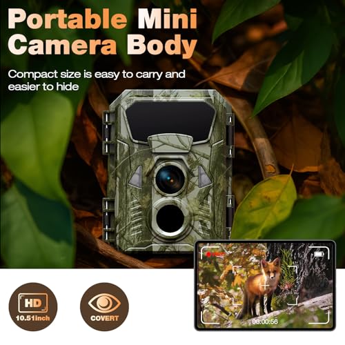 VOOPEAK Mini Wildlife Camera HD 4K 48MP Trail Camera, Wildlife Camera with Night Vision Motion Activated IP66 Waterproof Garden Camera, 120°Wide-Angle Game Cameras for Wildlife Monitoring