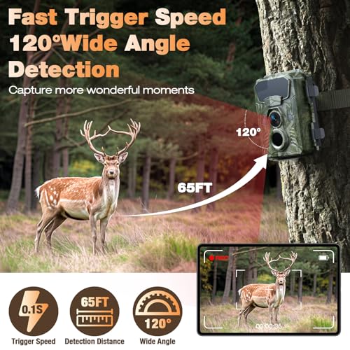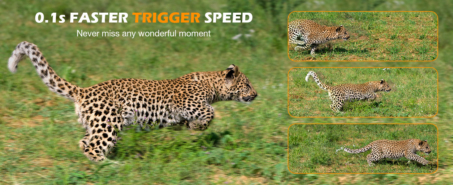 ⚡⚡⚡【IP66 Waterproof & Rapid Trigger Speed】 With an IP66 waterproof, this wildlife camera is built to withstand rain and dust, allowing it to perform reliably in harsh weather. The fast trigger speed ensures the wildlife camera captures every motion accurately, so you never miss a moment