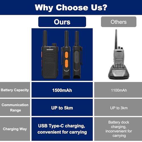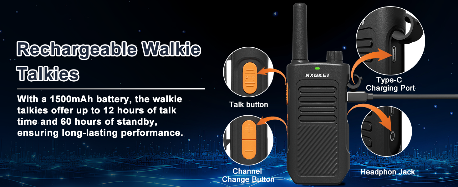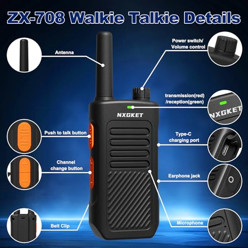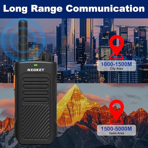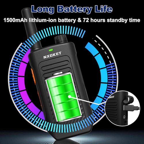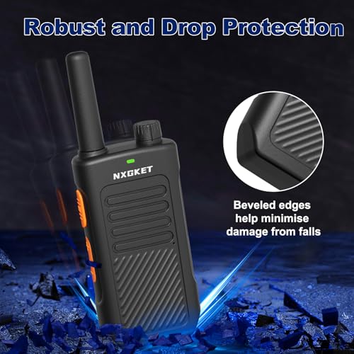 - 【Multi-Function】 NXGKET walkie talkies are equipped with advanced features such as volume control, automatic squelch, channel scan, low-battery alarm, and drop protection. With long-lasting battery life and stable long-range connection, they are ideal communication tools for indoor and outdoor use. They also feature a 3.5mm headphone jack for connecting headphones.