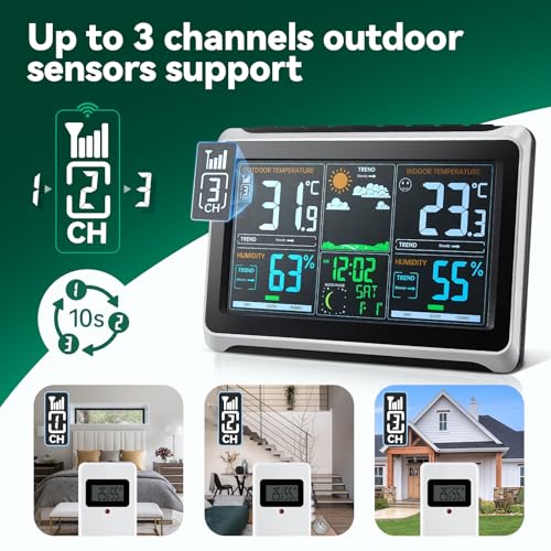 Warmiehomy Weather Station With Outdoor Sensor, Indoor Outdoor Thermometer Wireless Weather Stations With Color Display Console For Home Office, Forecast Temperature Sensor Humidity Monito
