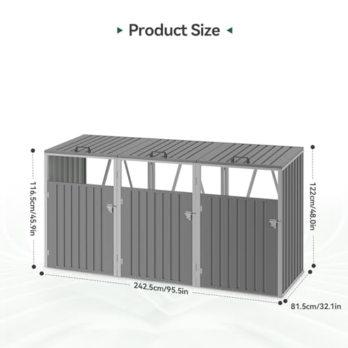 【Multi-Purpose Outdoor Storage Solution】Beyond storing trash bins, this versatile shed doubles as a practical outdoor storage space for garden tools, firewood, gardening supplies, or other outdoor essentials. With dimensions of 216.5×81.5x122cm (front height 116.5cm), it offers ample room to keep your outdoor area organized. NOTE:Self-installation is required, Please refer to the attached manual or our installation video. If you have any problem, please feel free to contact us.