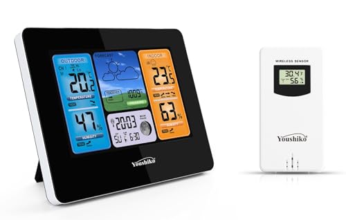 Youshiko Weather Station Radio Controlled Clock (Official UK & Ireland Version) , Indoor Outdoor Temperature, Humidity, Barometric Pressure
