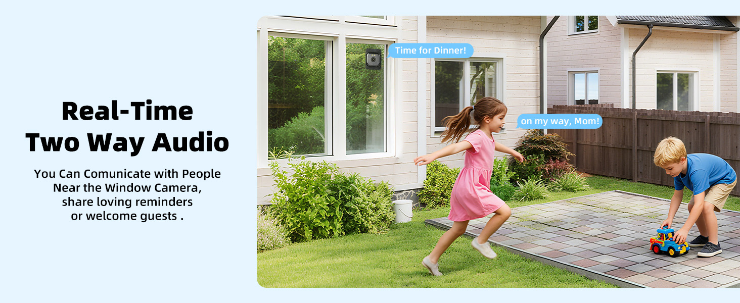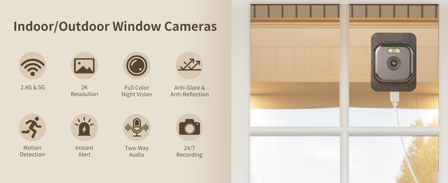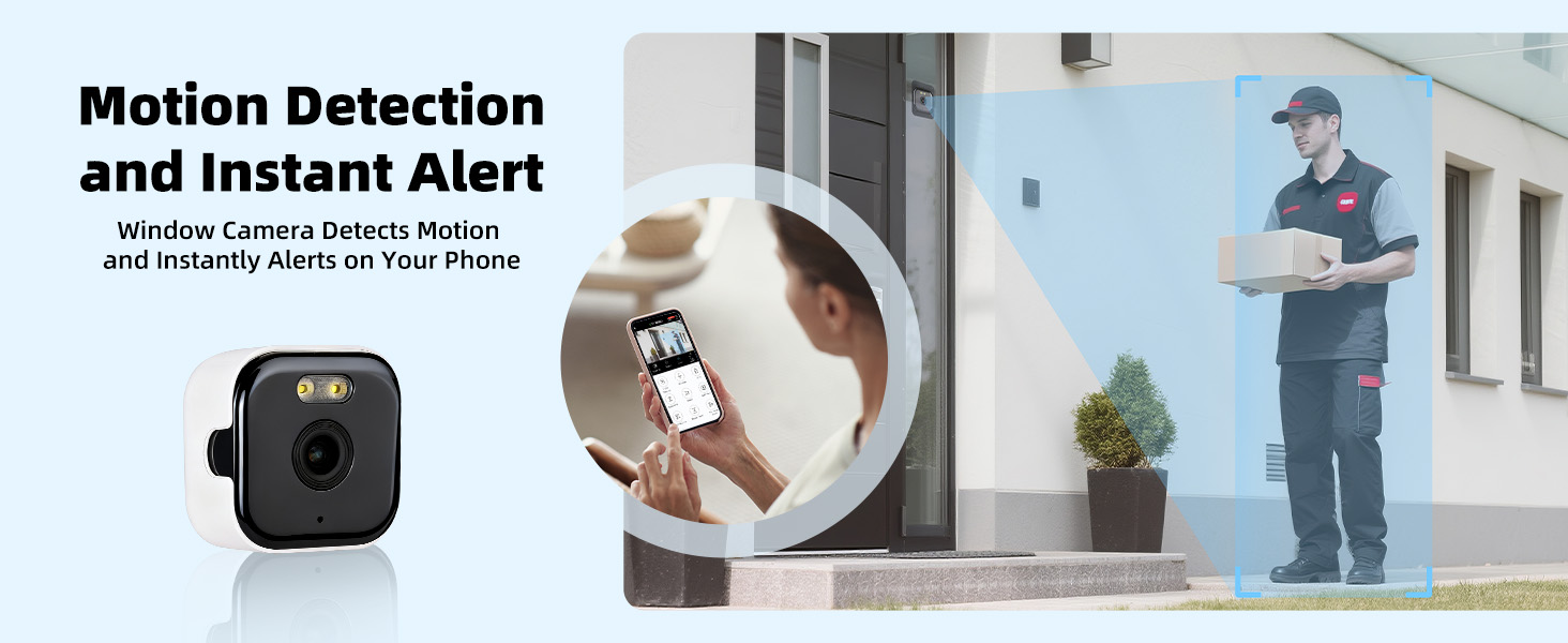 AI Motion Detection + Instant Alerts: Window camera with night vision detects unusual motion any time of day, sends real-time alerts to your phone. Clips are automatically tagged to help you review events quickly, so you can stay on top of what’s happening