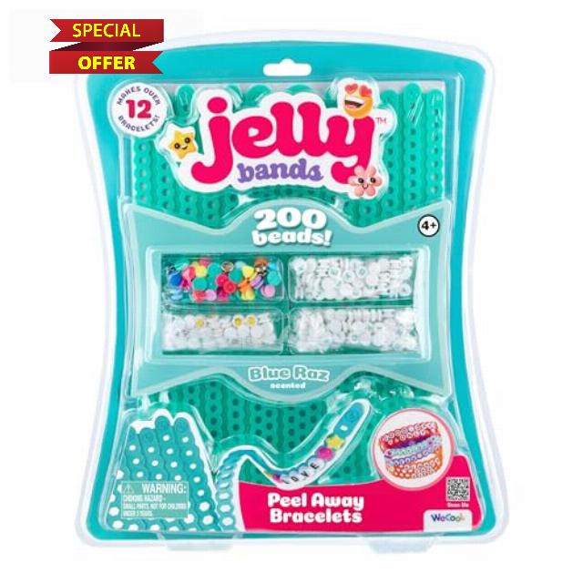 Take jewelry-making to the next level with Jelly Bands – each craft kit contains everything you need to make your own stylish bracelets! Creating Jelly Bands is fun and simple – just peel your bands apart and pop your choice of beads into the holes. With over 200+ letter, 3D, and graphic beads to choose from, your bands are customisable to the max. The bracelets are Blue Raspberry scented, for extra sensory fun. Jelly Bands are perfect for crafting friendship bracelets to share at your next music concert, party or sleepover.”