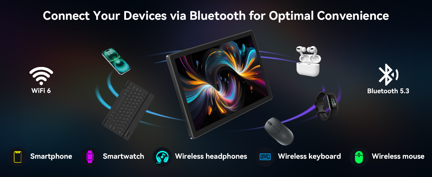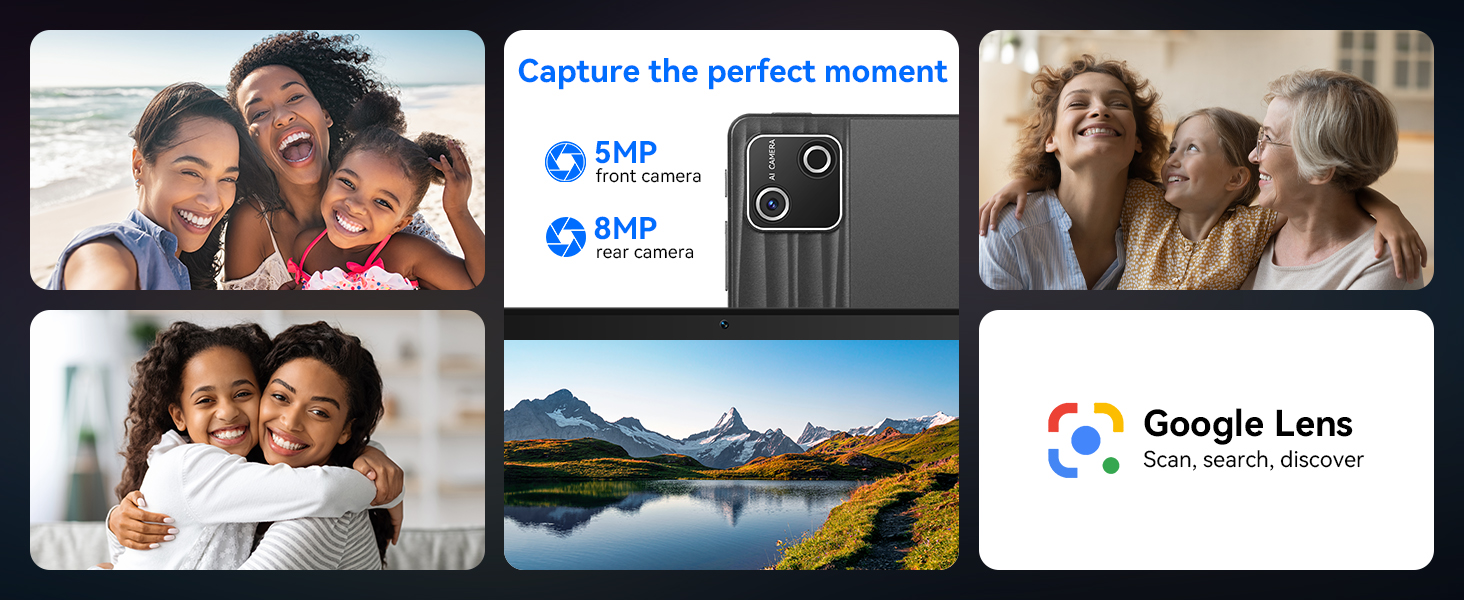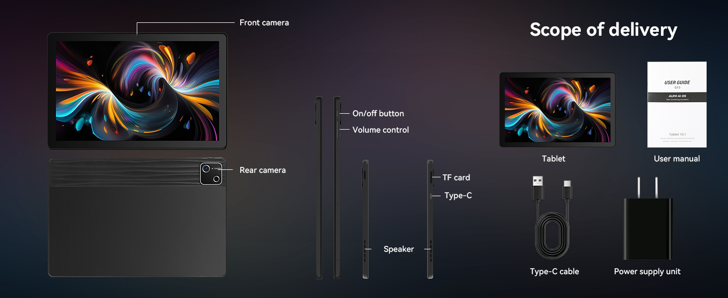 【Immersive Audio, Dual Cameras & Enhanced Connectivity】Our 10 inch tablet with dual 1W speakers provide rich, clear sound for videos, calls, and music. An 8MP rear camera and 5MP front camera support video calls and photography. With dual-band 5G WiFi, Bluetooth 5.4, USB-C OTG, GPS, and Google Mobile Services (GMS) certification, the G13 keeps you connected and productive.(OTG adapter cable not included.)
